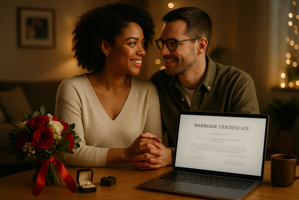Forget complicated paperwork and courthouse visits. Our step-by-step process guides you easily from start to finish. You’ll receive a valid online marriage license and even a legally-recognized online marriage certificate—no computer skills required!