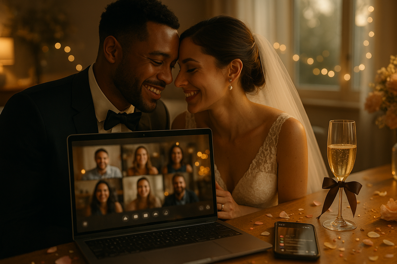 You don’t need fancy equipment to stream your virtual wedding. With services like Zoom or Facebook Live, all you need is a good internet connection, a device with a camera, and a little bit of planning. Want to know more about how the process works? Visit our How it works page for step-by-step guidance!