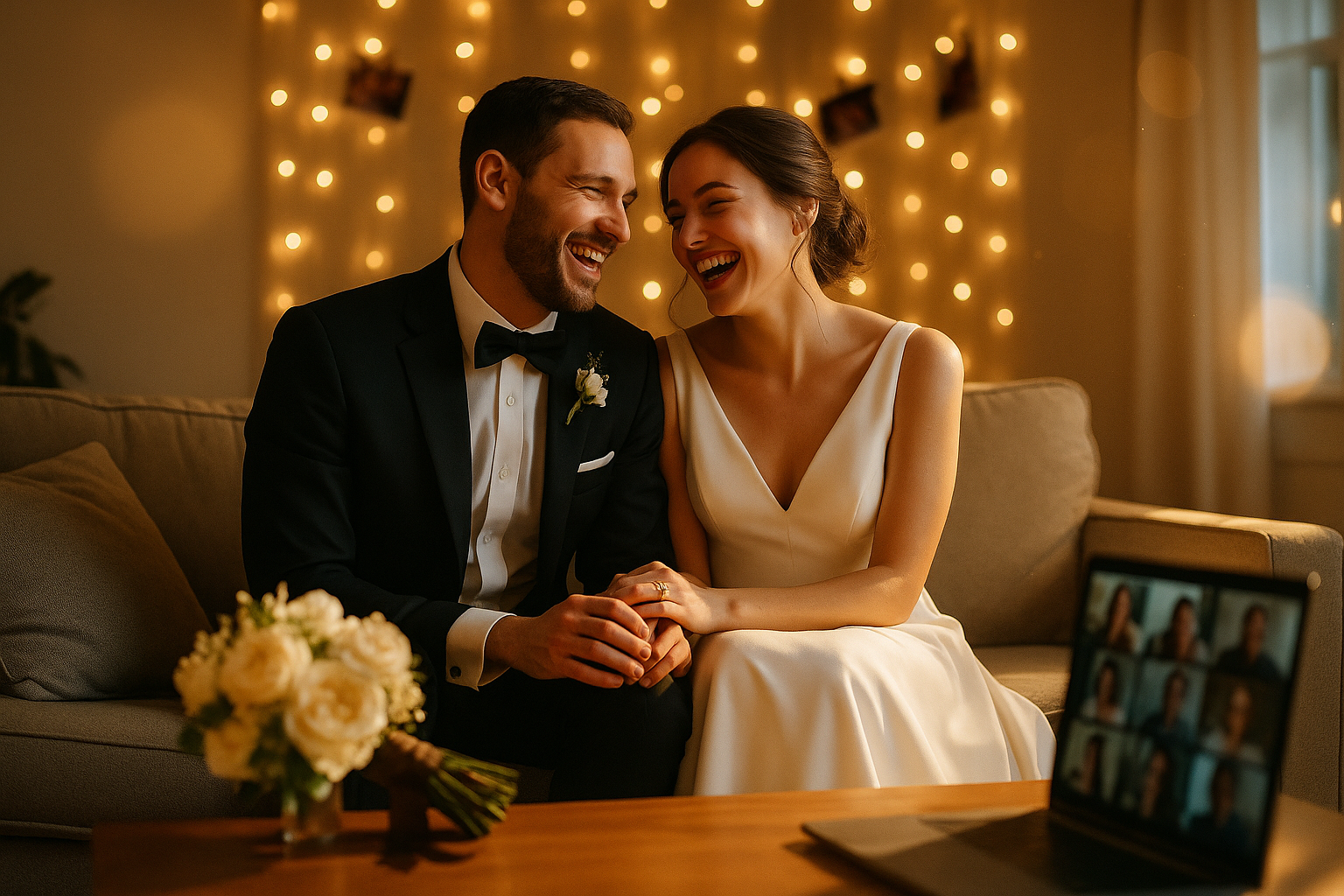 Your online wedding ceremony sets the stage for a lifetime of memories. Consider creating a stunning backdrop at home, using fairy lights, meaningful photos, or even a themed setup. Communicate your vision with guests so they can join from anywhere with their own touches—a flower in their hair, a favorite color, or a dress code can unify the vibe!